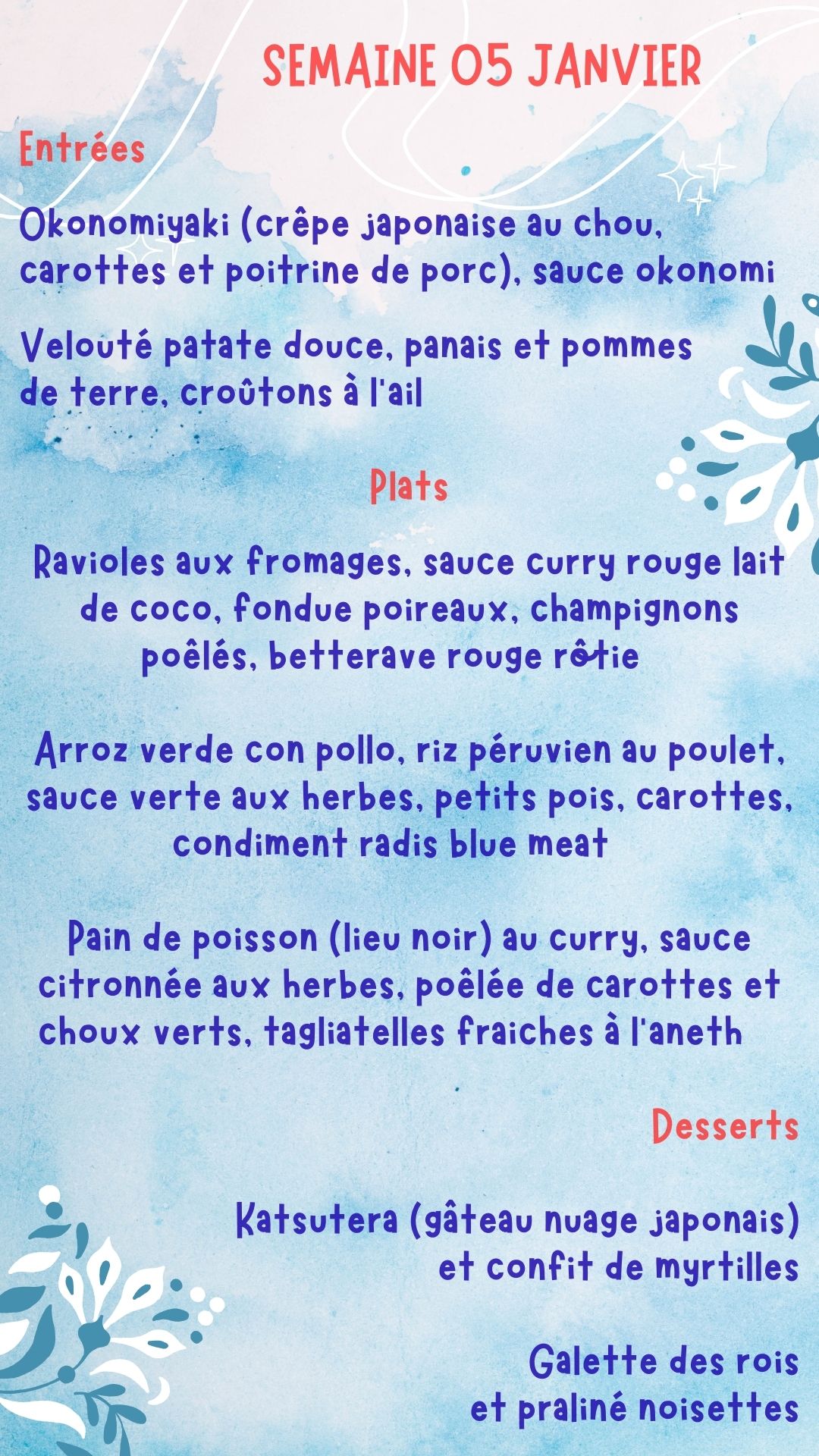 Notre menu comporte toujours une offre végétarienne. Il change toutes les semaines pour vous proposer des plats différents tout le long de la semaine.