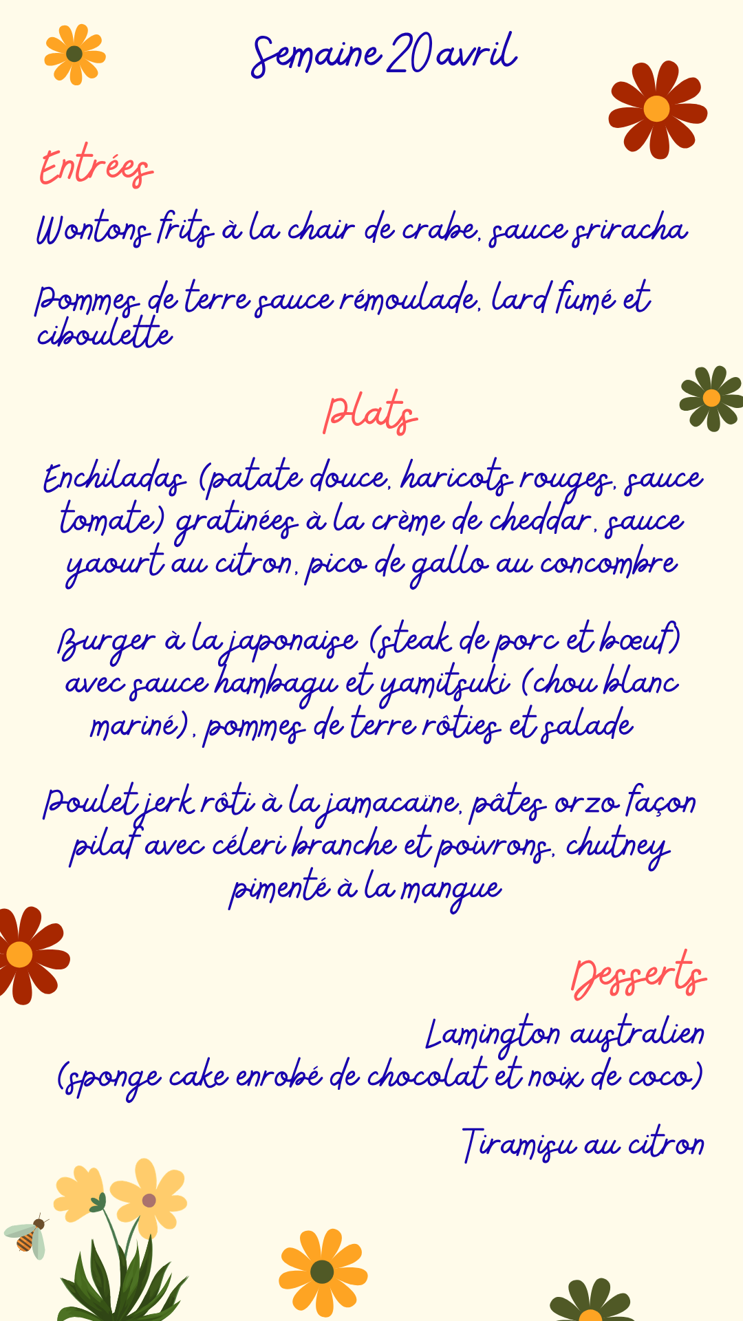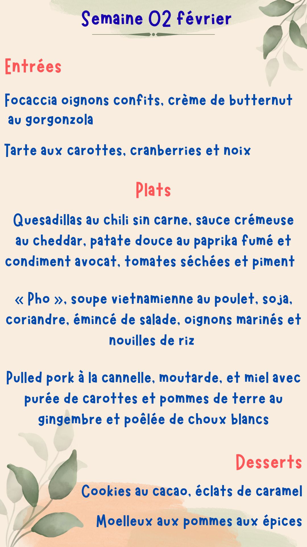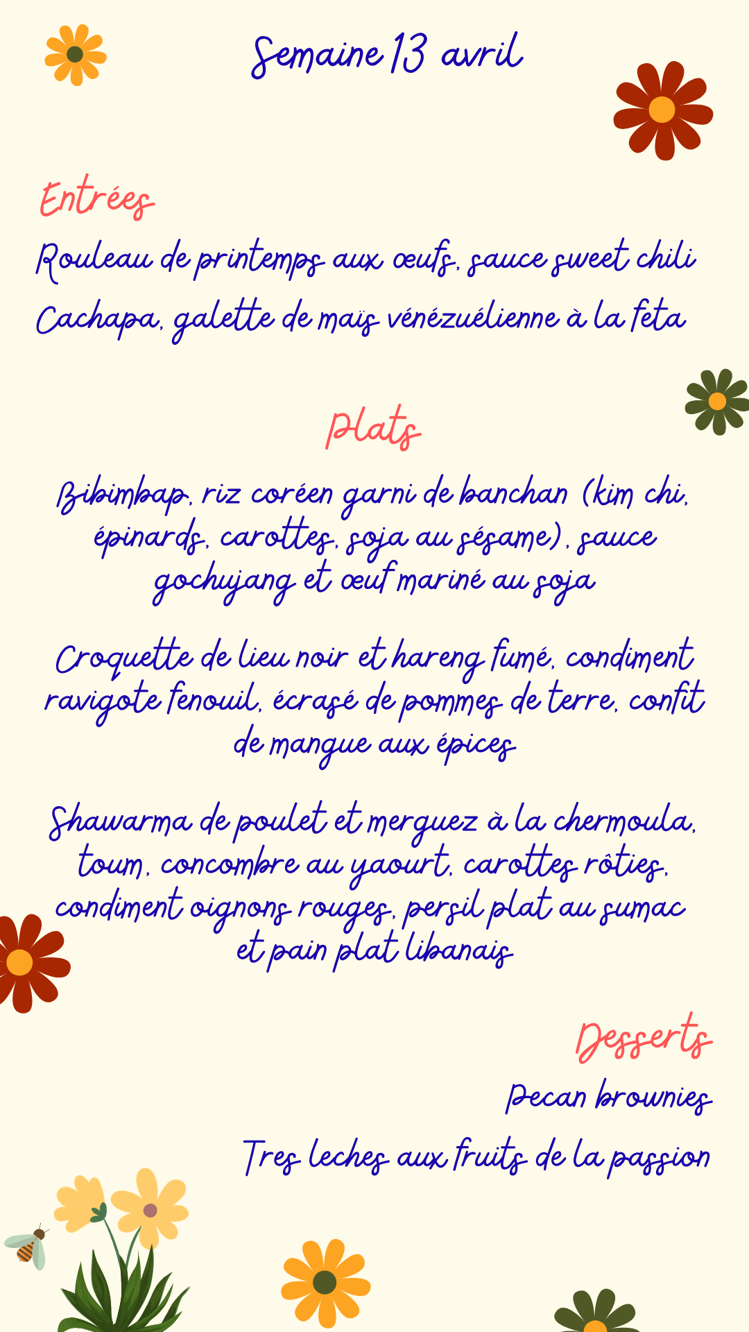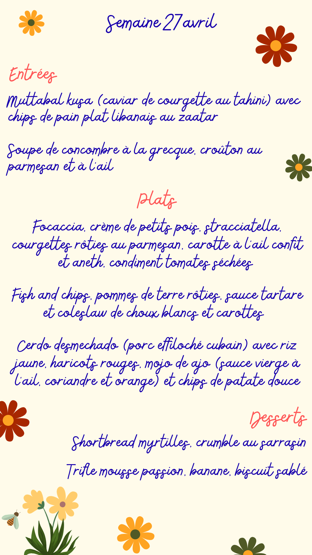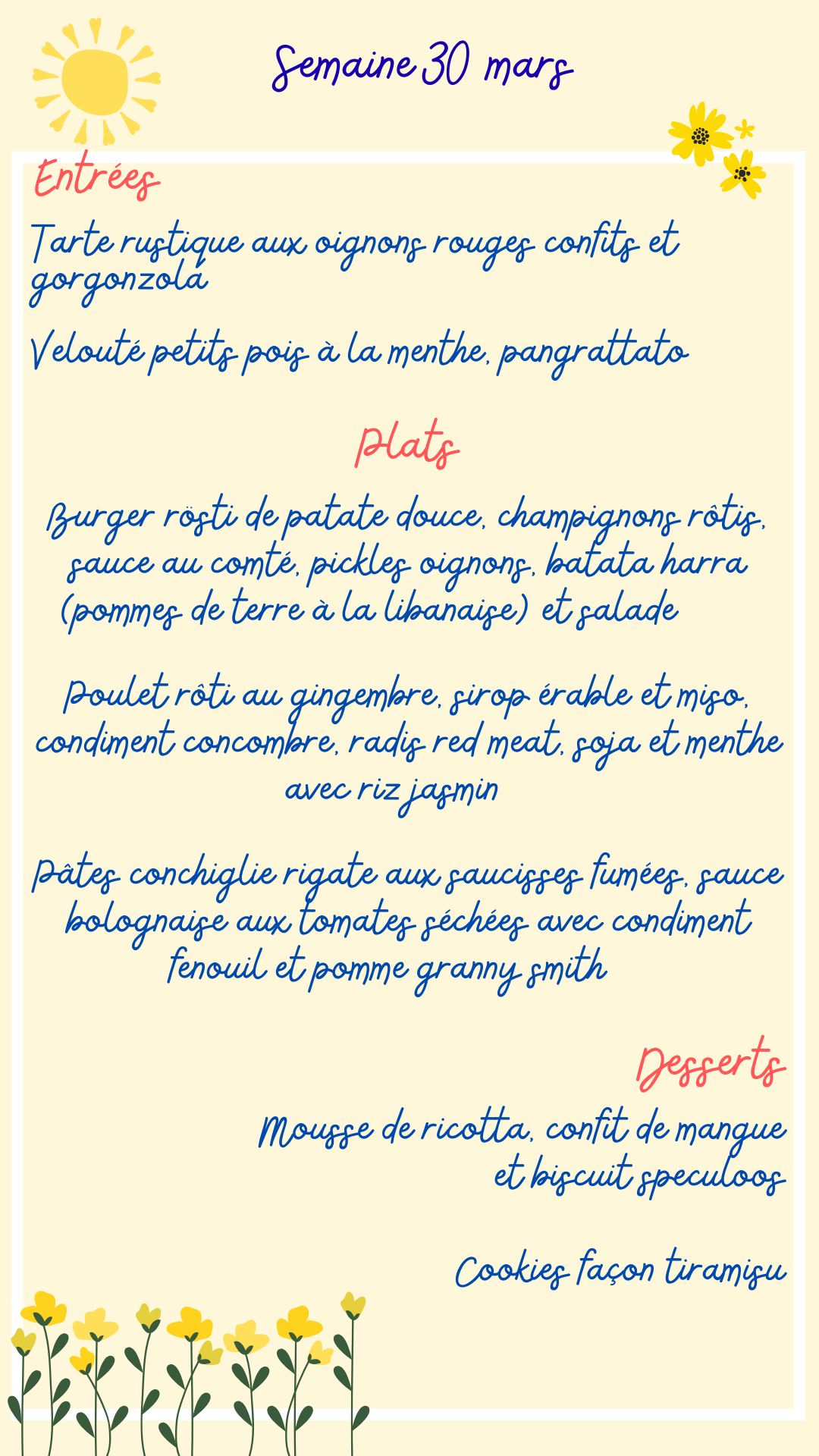 Vous pouvez également avoir notre menu actualisé dans nos stories Instagram.